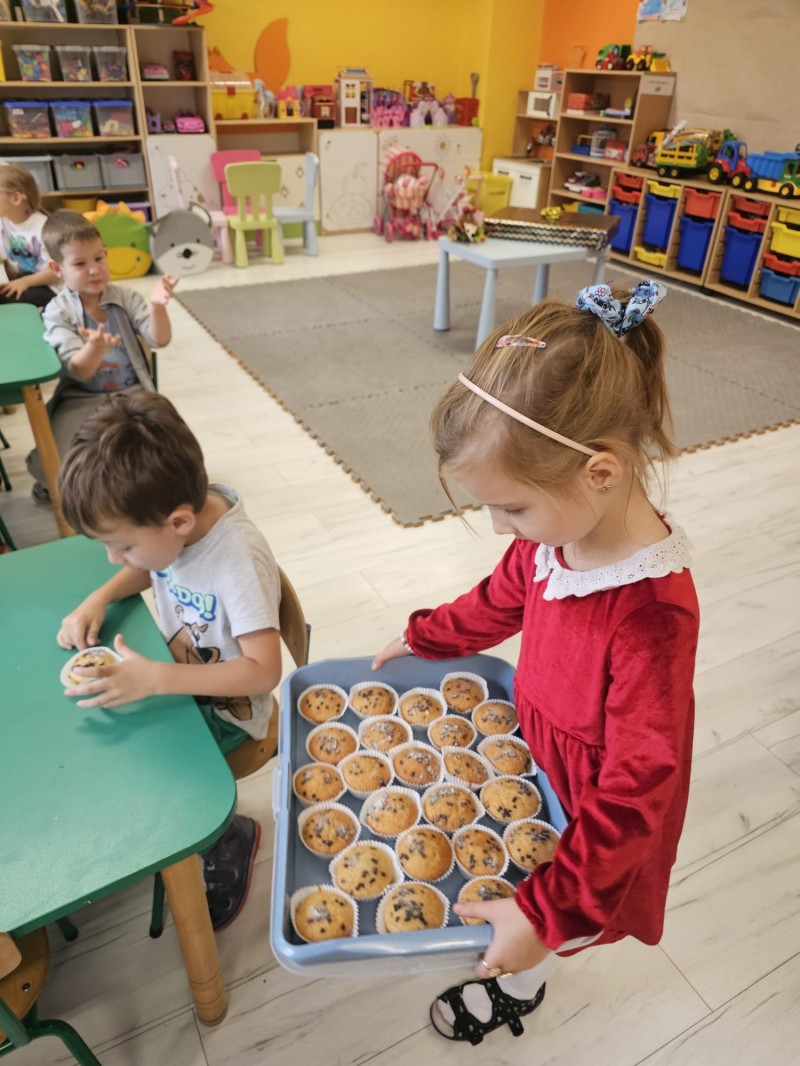 Pani Justyna z Eleną upiekły najsmaczniejsze na świecie babeczki, które zniknęły w mgnieniu oka. Chłopcy otrzymali upragnione klocki więc od razu zabrali się do budowy.