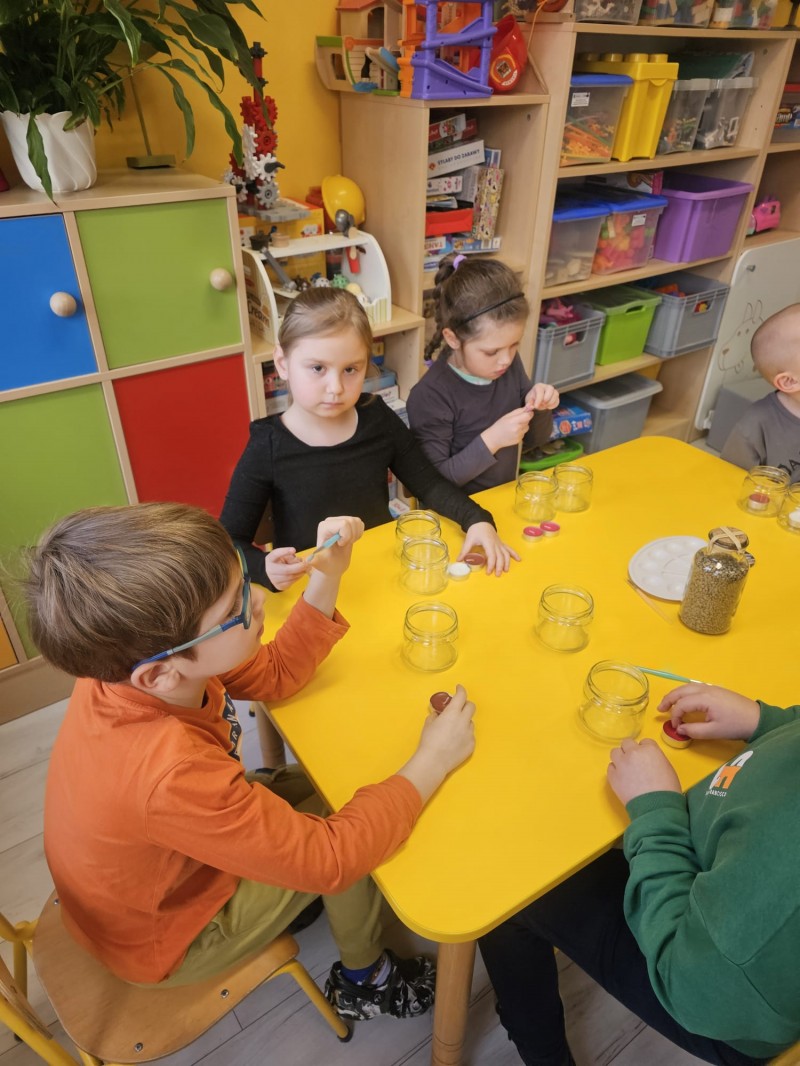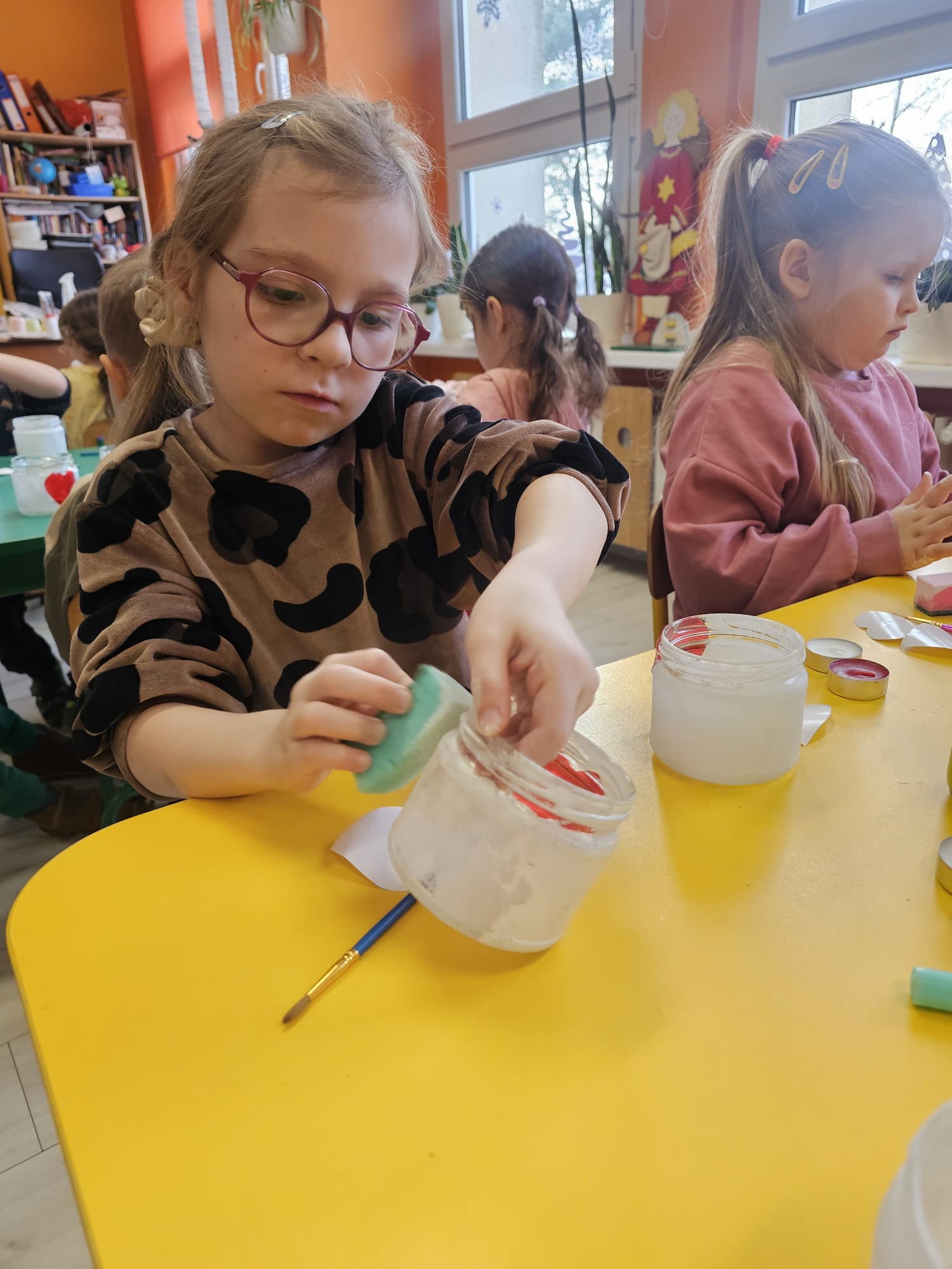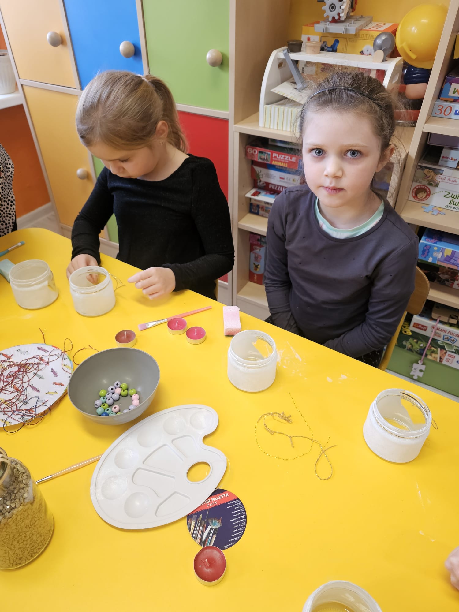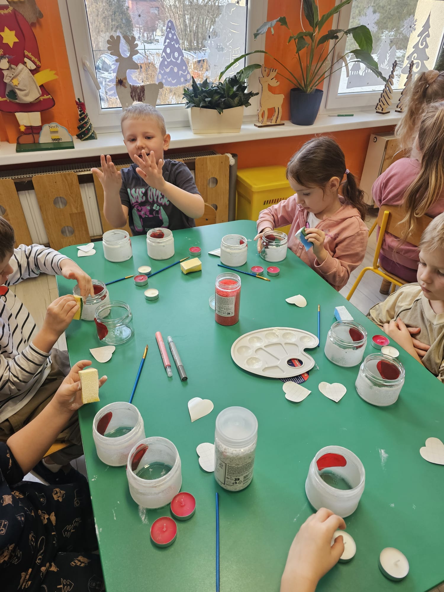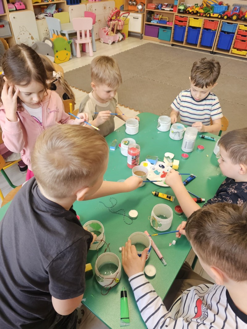 Dzieci z ogromnym entuzjazmem tworzyły własnoręczne, pachnące mydełka oraz piękne świeczniki.Dzieci miały możliwość zobaczyć w jak prosty sposób można wykonać przepiękne mydełko z suszoną lawendą, płatkami róży, rumiankiem lub innymi suszonymi kwiatami czy ziołami.Ależ to był zapach! Była to nie tylko świetna zabawa, ale także doskonała okazja do rozwijania kreatywności, zdolności manualnych i wspólnego spędzania czasu. To także dowód bardzo dobrej współpracy naszej grupy z rodzicami.