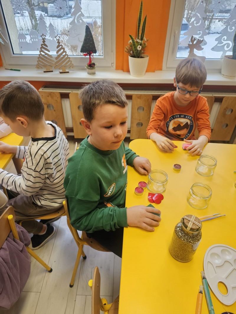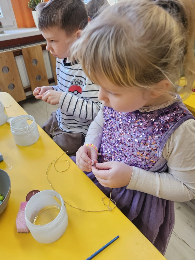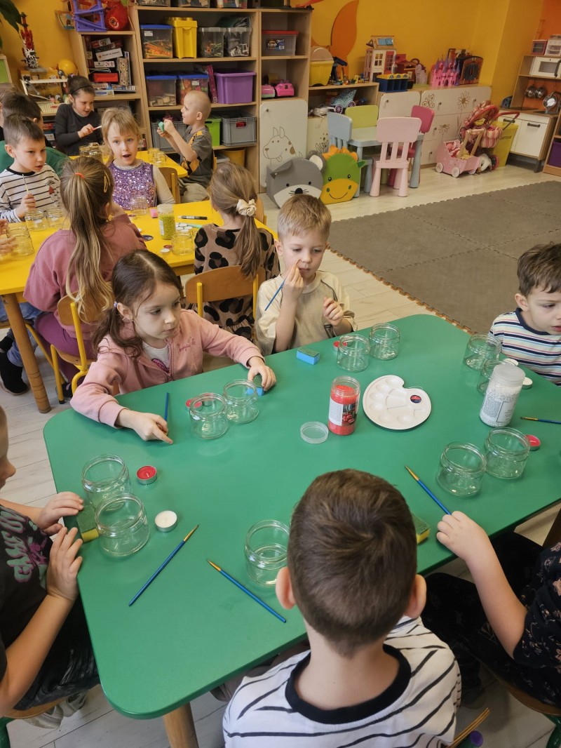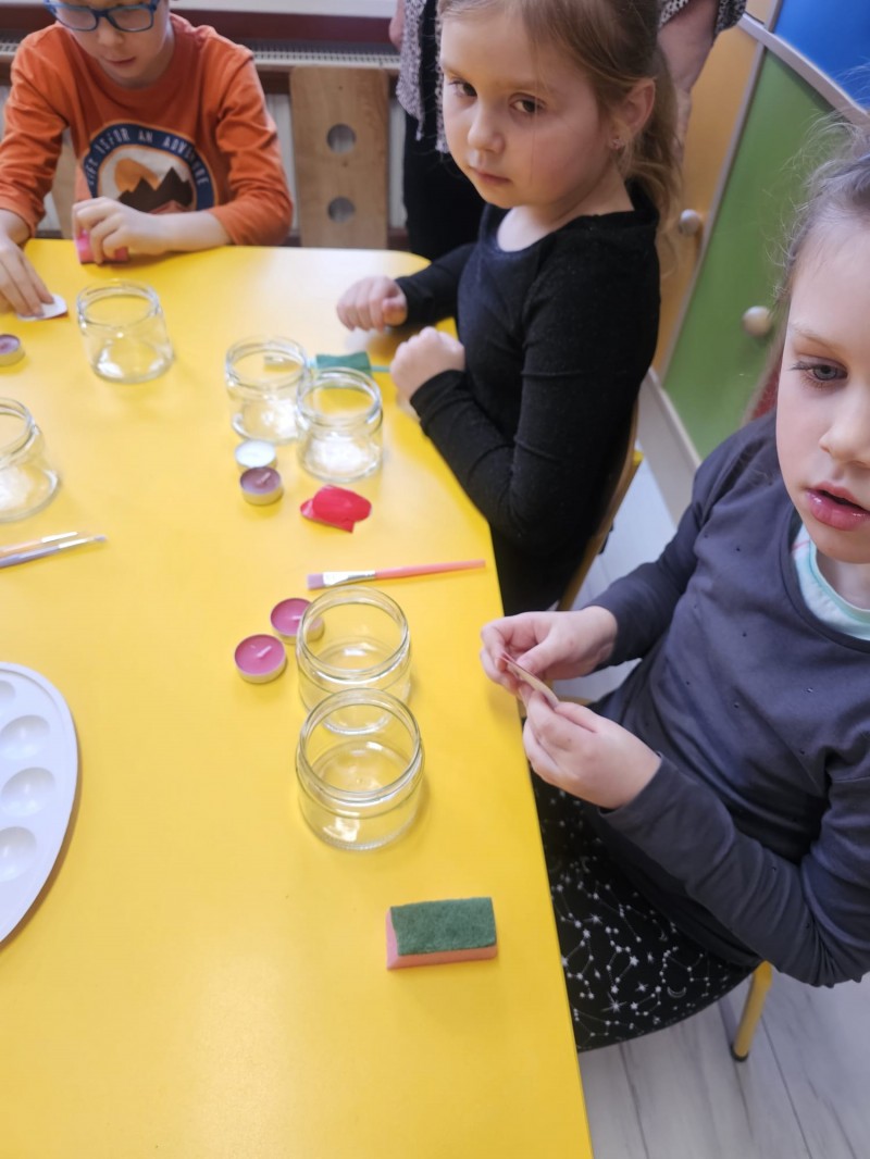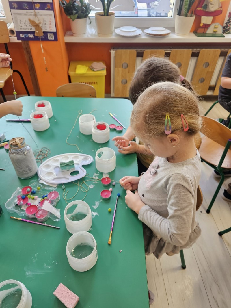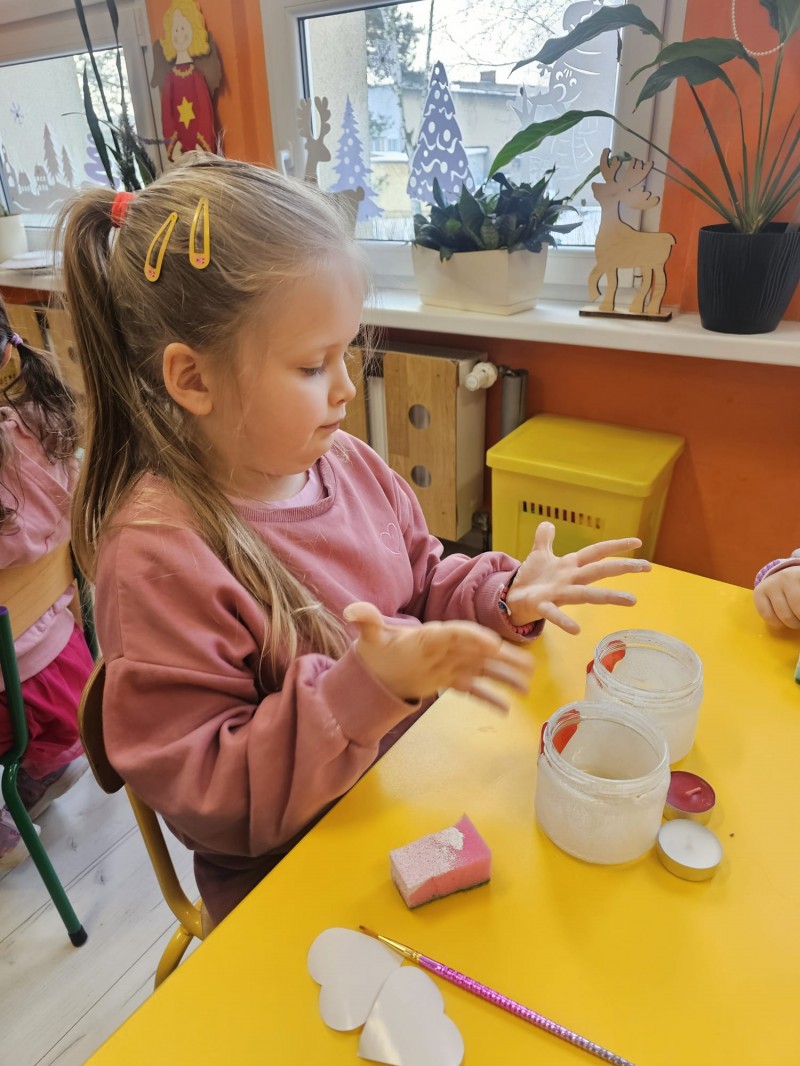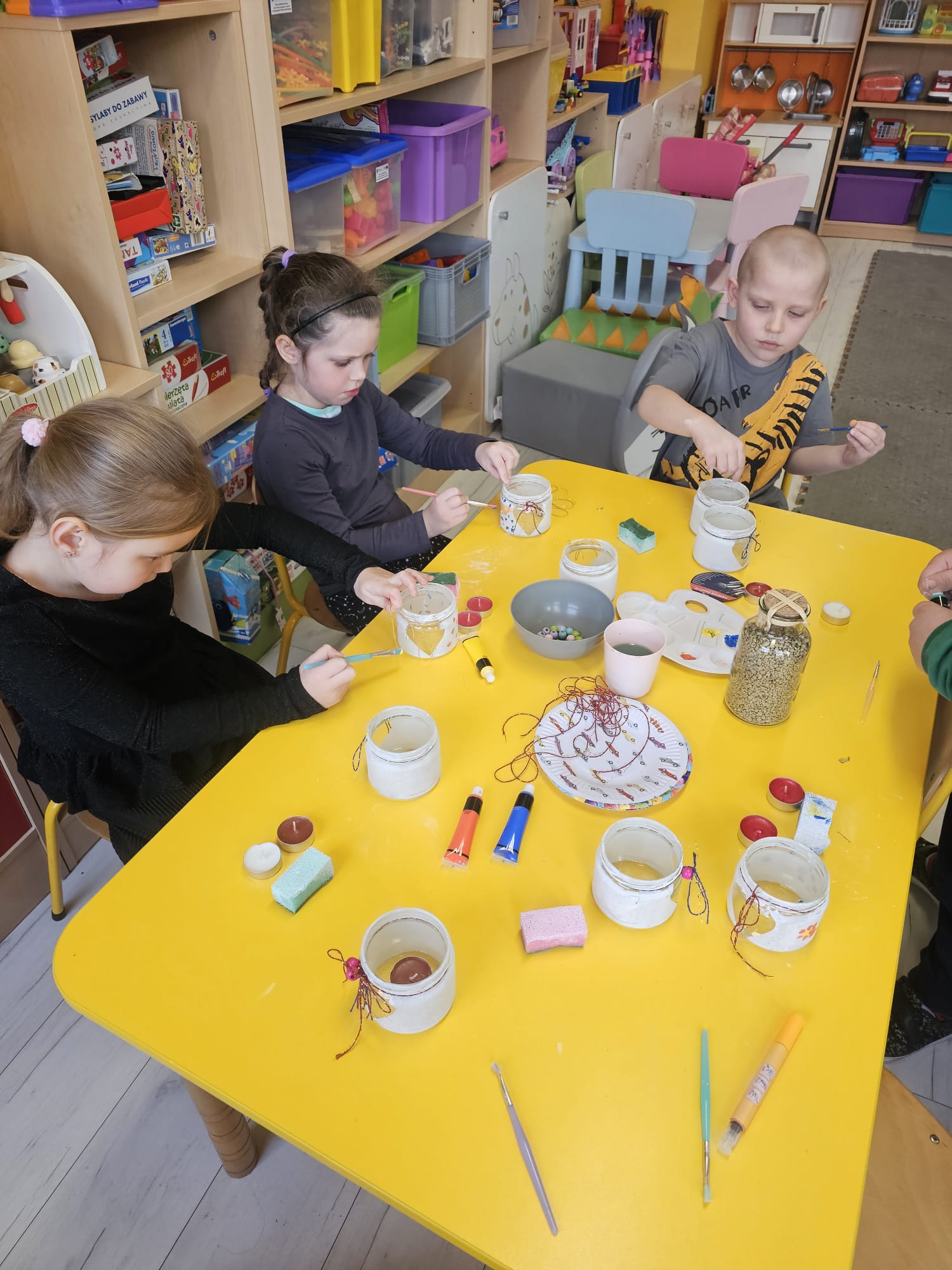 Dzieci z ogromnym entuzjazmem tworzyły własnoręczne, pachnące mydełka oraz piękne świeczniki.Dzieci miały możliwość zobaczyć w jak prosty sposób można wykonać przepiękne mydełko z suszoną lawendą, płatkami róży, rumiankiem lub innymi suszonymi kwiatami czy ziołami.Ależ to był zapach! Była to nie tylko świetna zabawa, ale także doskonała okazja do rozwijania kreatywności, zdolności manualnych i wspólnego spędzania czasu. To także dowód bardzo dobrej współpracy naszej grupy z rodzicami.