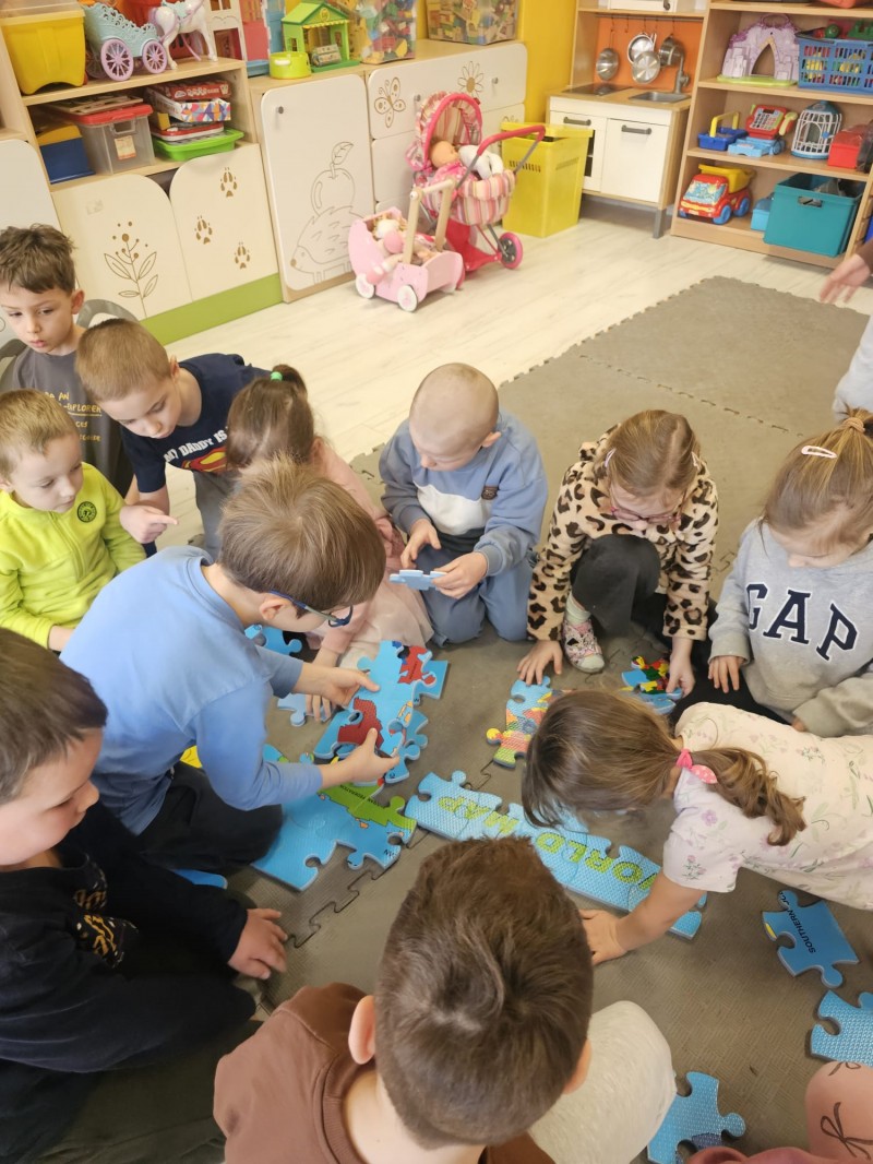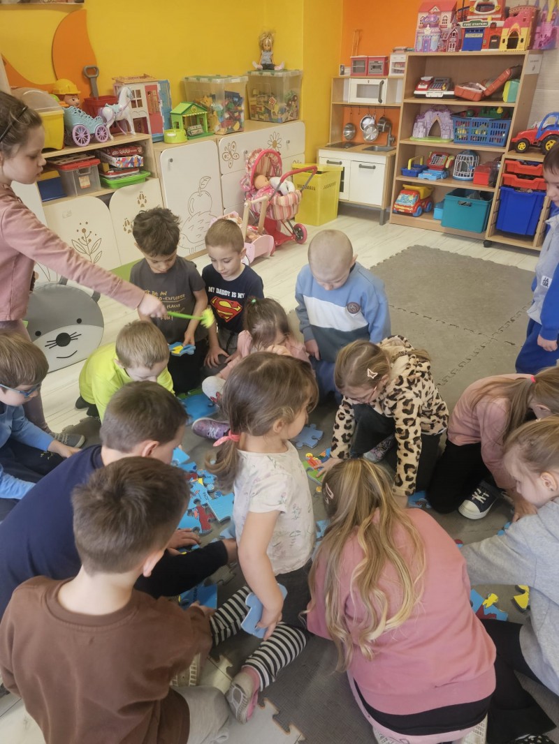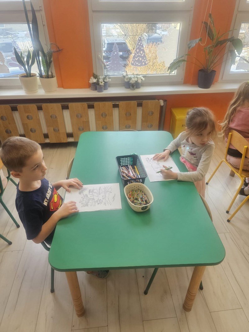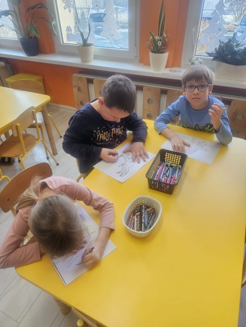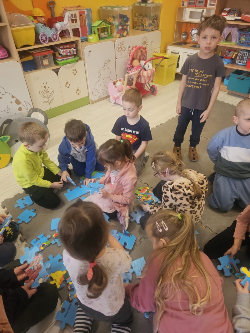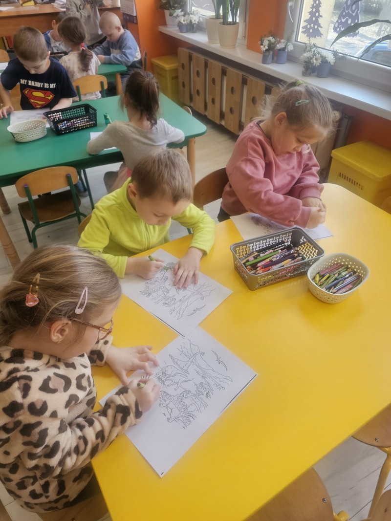 Dzieci przygotowały odpowiednie ilustracje, mapy, globus, sylwety dinozaurów, kolorowanki, puzzle oraz wiele innych niezbędnych pomocy dydaktycznych. Motylki były zachwycone takimi zajęciami.