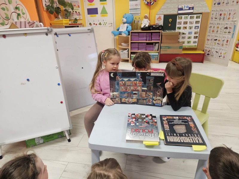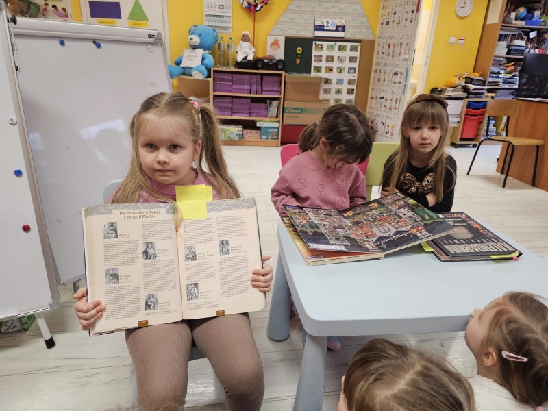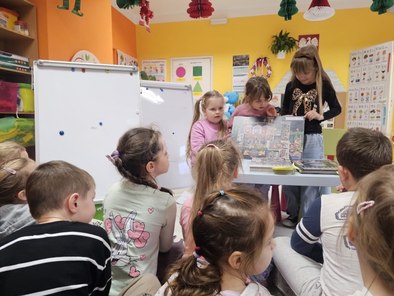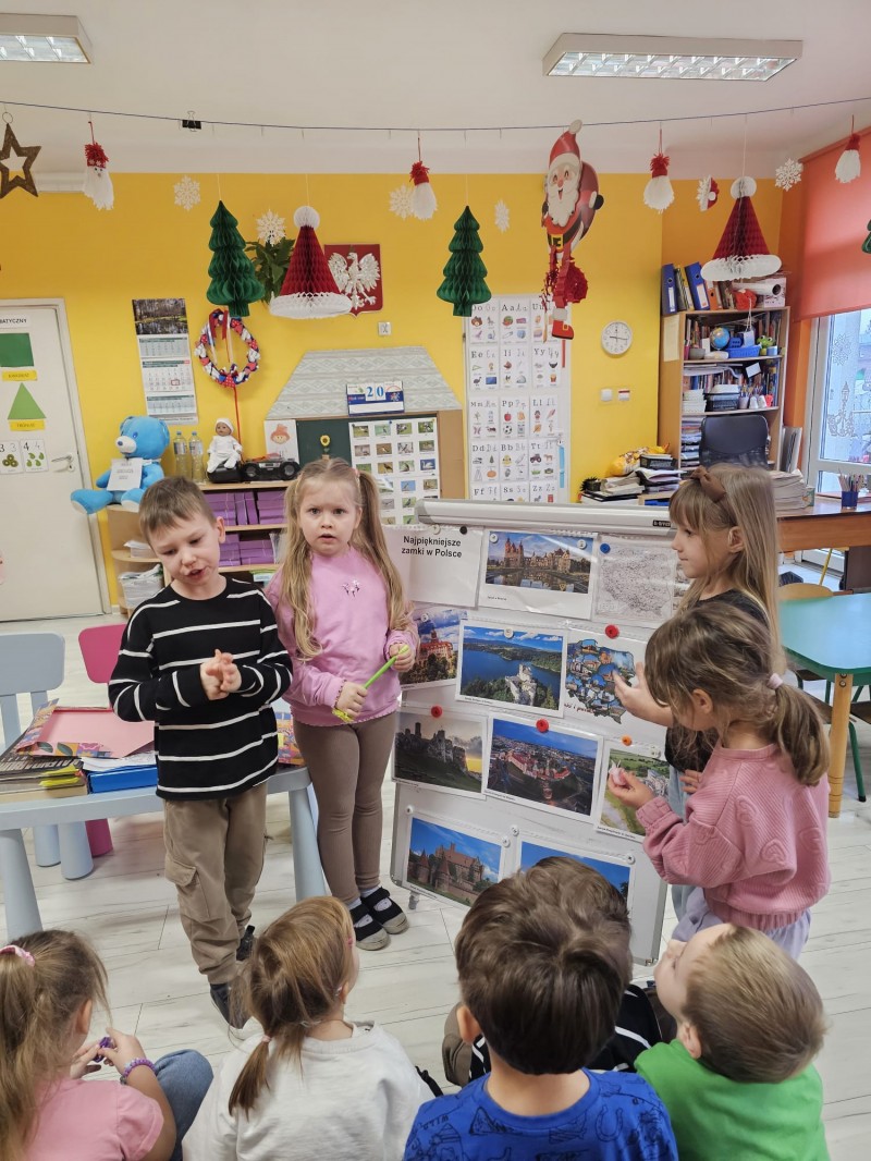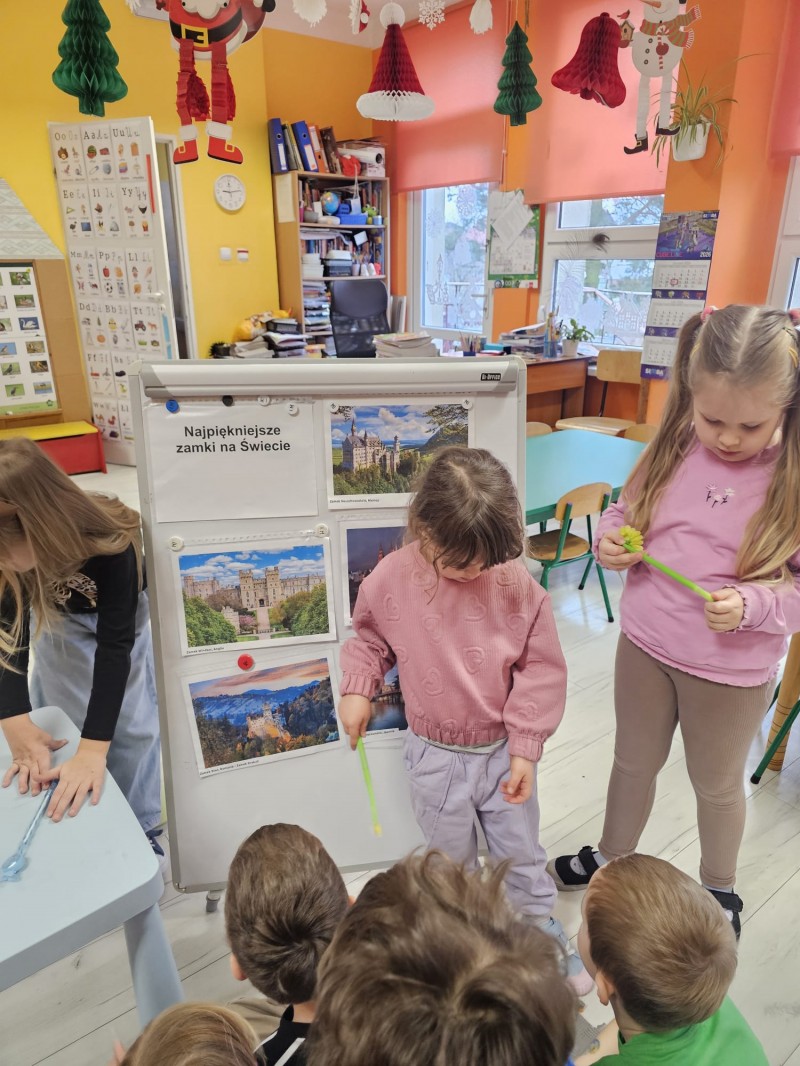 Kolejne spotkanie przeniosło nas do bajkowego świata księżniczek. Hania, Jadzia i Zuzia poprowadziły zajęcia dla swoich kolegów i koleżanek. W opowiadaniach dziewczynek znaleźli się również prawdziwi królowie Polski, najpiękniejsze zamki, a nawet smoki i rycerze. Duże brawa należą się Hani, która przygotowała całą torbę BARDZO ciekawych pomocy dydaktycznych.Były tam piękne książki z zamkami i królami.Były ilustracje najpiękniejszych zamków w Polsce i na świecie.