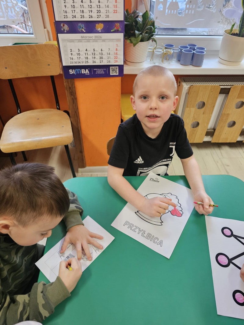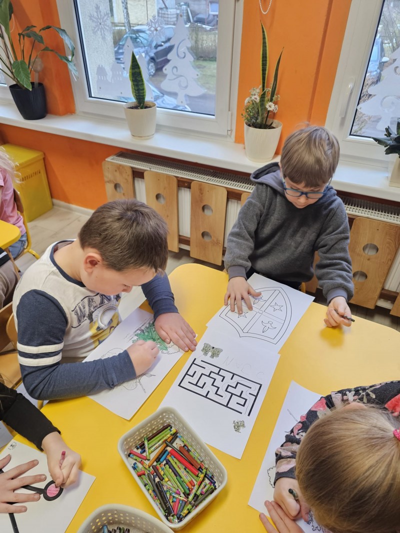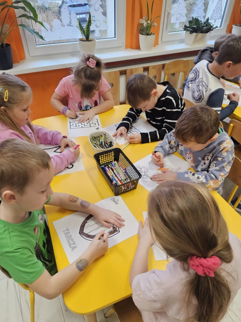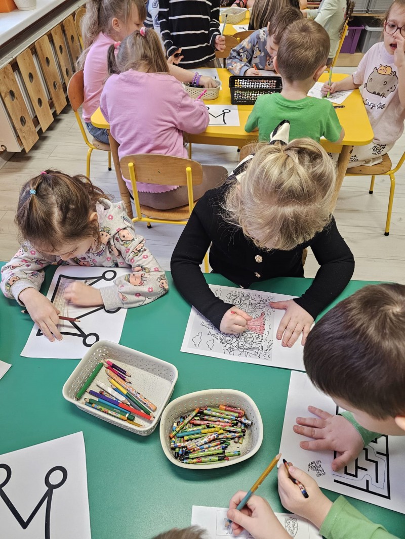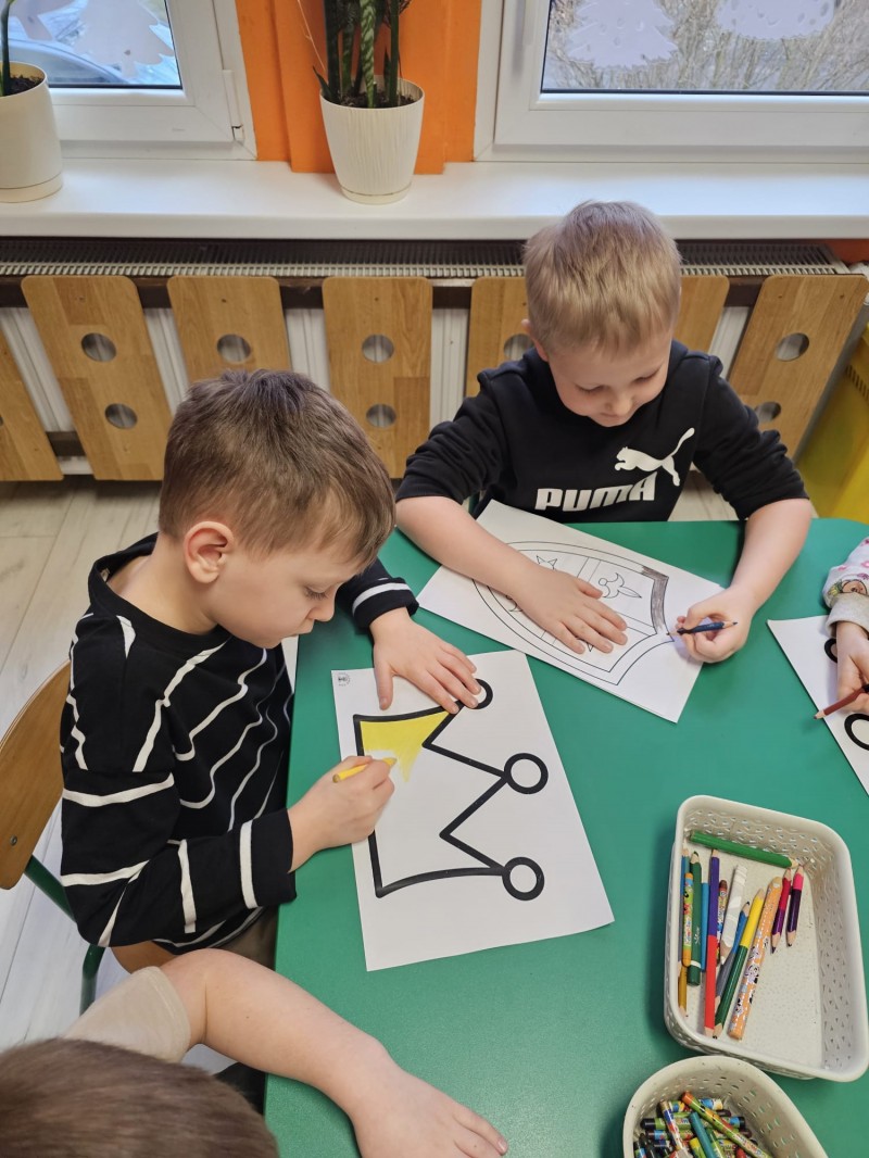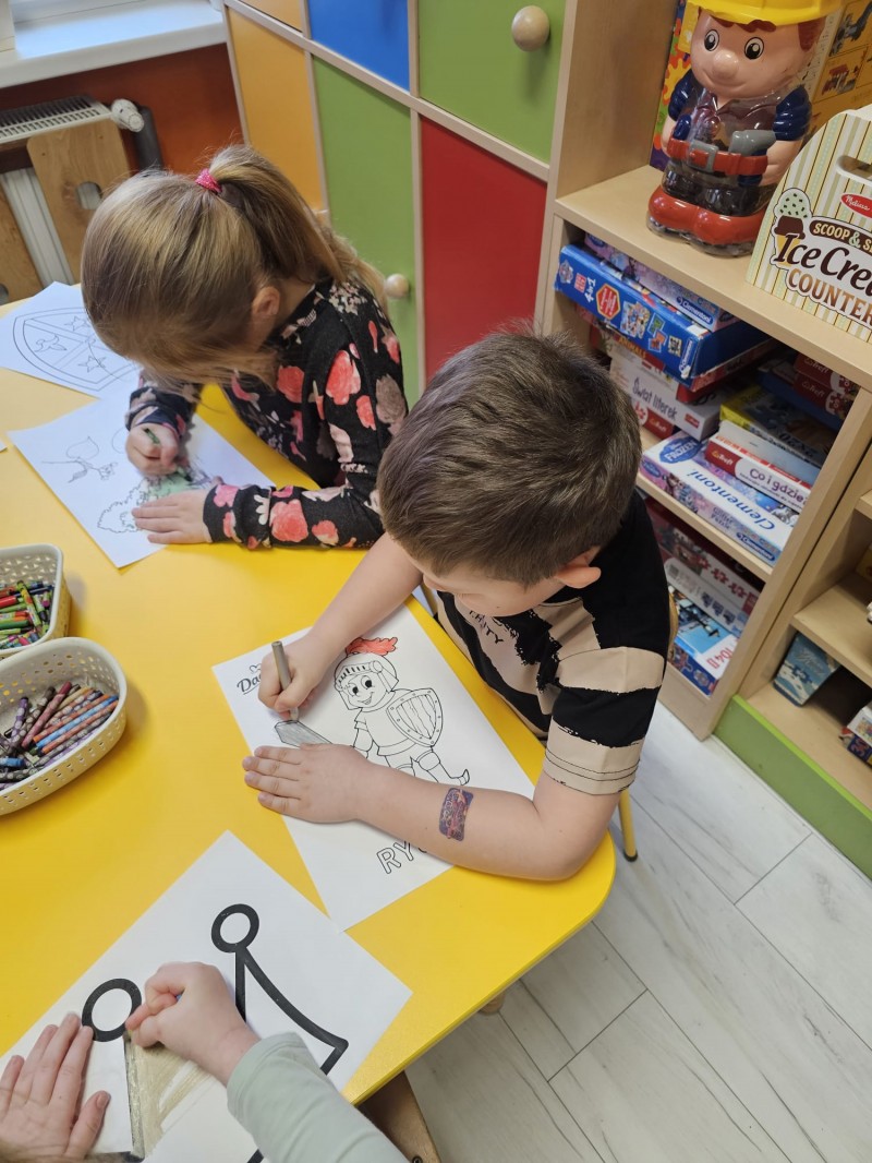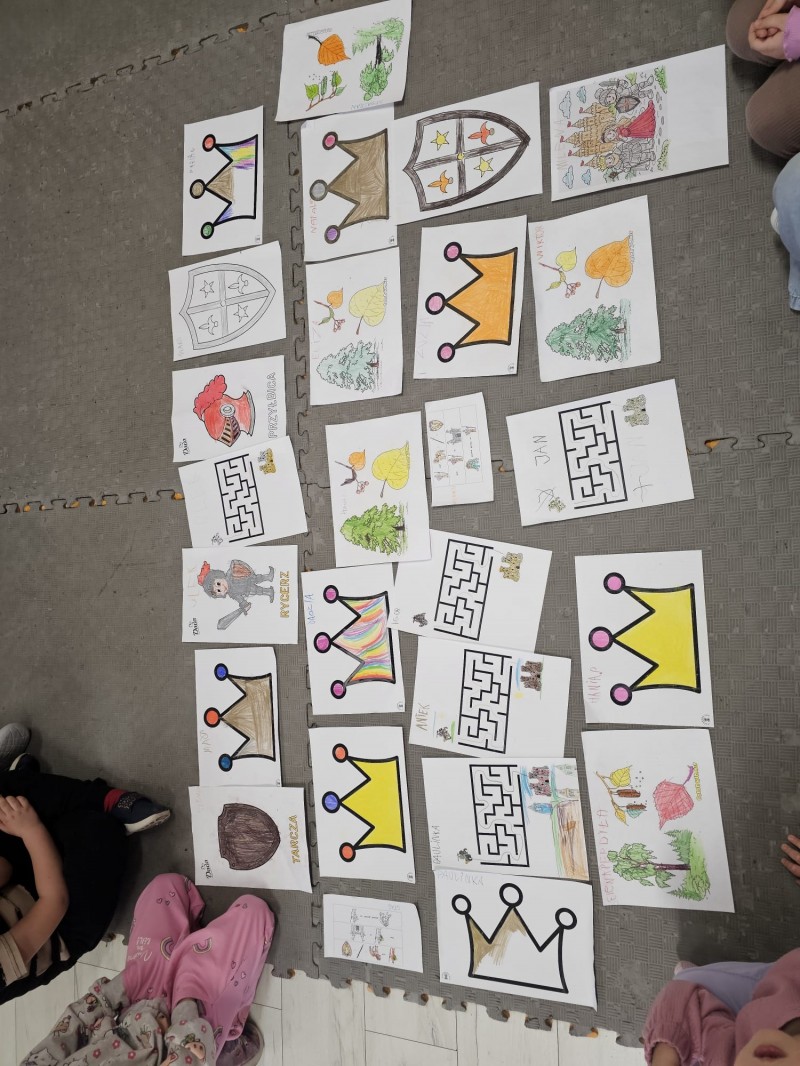 Całe mnóstwo kolorowanek.Dziewczynki z ogromnym zaangażowaniem realizowały swój temat. Było kolorowo, inspiruǰąco i kreatywnie. Skoro była mowa o księżniczkach to od razu chłopcy wcielili się w rolę rycerzy.A królowa wcale nie była jedna, tylko kilka......i wszyscy cudownie się bawili.