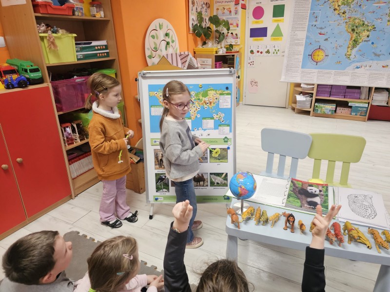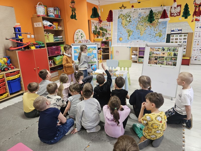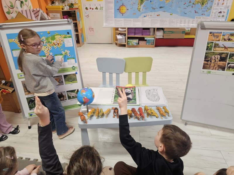 Eksperyment "Dzieci też potrafią uczyć "- zajęcia o zwierzętach egotycznych przeprowadzone przez Hanię oraz Elenę