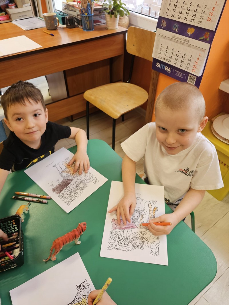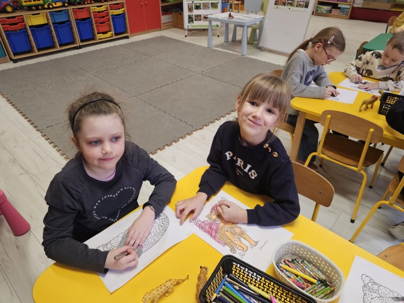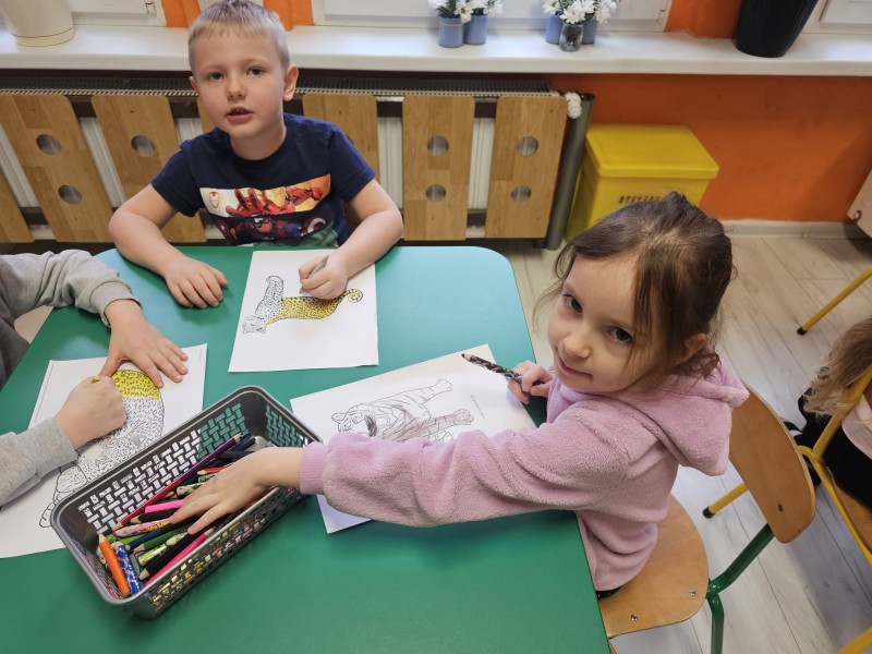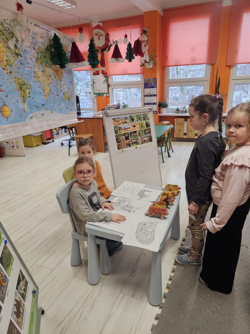 Dzisiejsze zajęcia przygotowały i przeprowadziły Elena z Hanią. Dziewczynki wszystko same przygotowały i opowiadały o zwierzętach egzotycznych. Były ilustracje, zagadki, kolorowanki. Nie zabrakło ciekawostek o pumach i o tym, że należą do rodziny: kotowate Hania i Elena bardzo dobrze poradziły sobie z tematyką zwierząt egzotycznych. BRAWO!