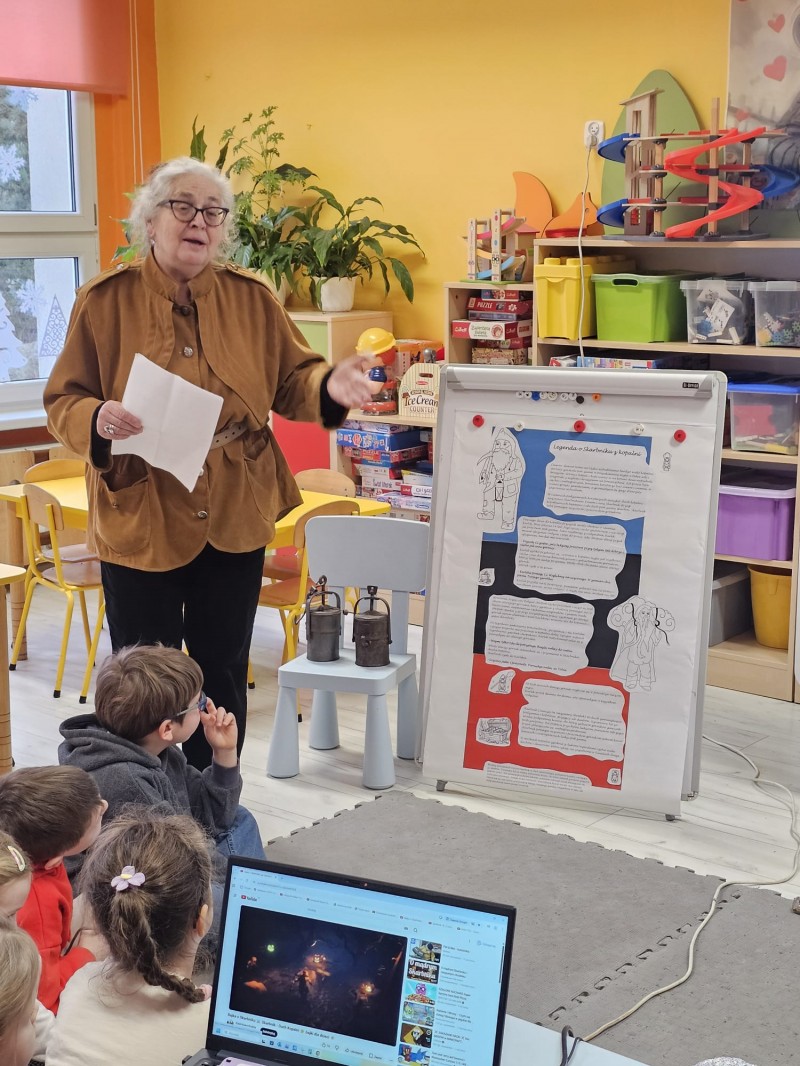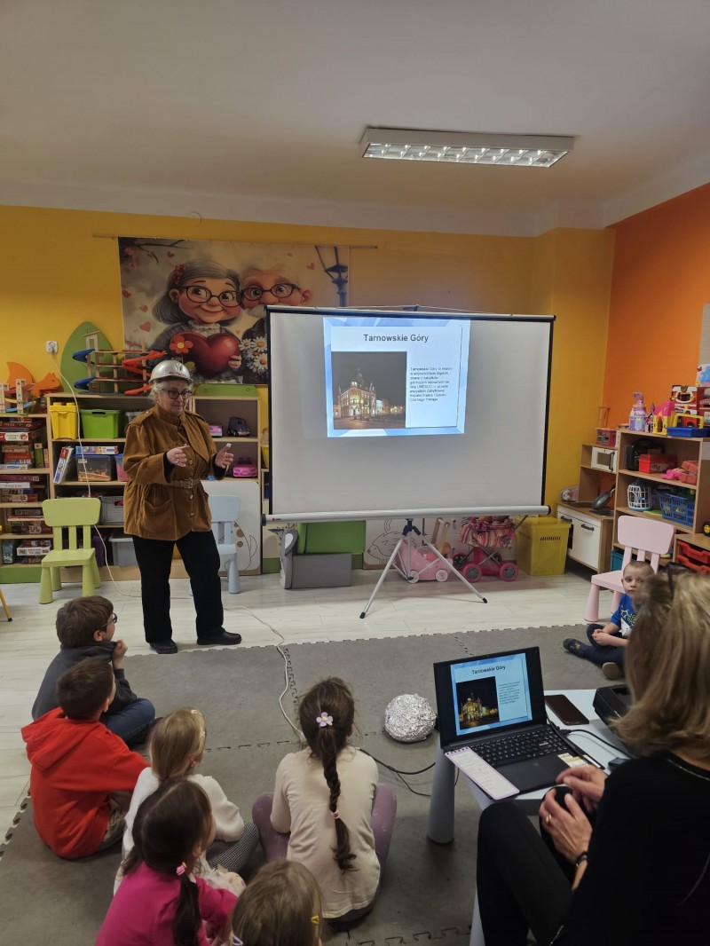 Dzieci z grupy Motylków wzięły udział w niezwykle ciekawej pogadance poświęconej Kopalni Srebra w Tarnowskich Górach – jednemu z najważniejszych zabytków naszego regionu wpisanych na listę UNESCO. Spotkanie poprowadzili przewodnik turystyczny oraz geograf, którzy w bardzo przystępny i interesujący sposób przybliżyli dzieciom tajemnice podziemnego świata.