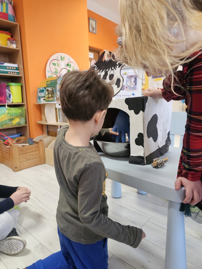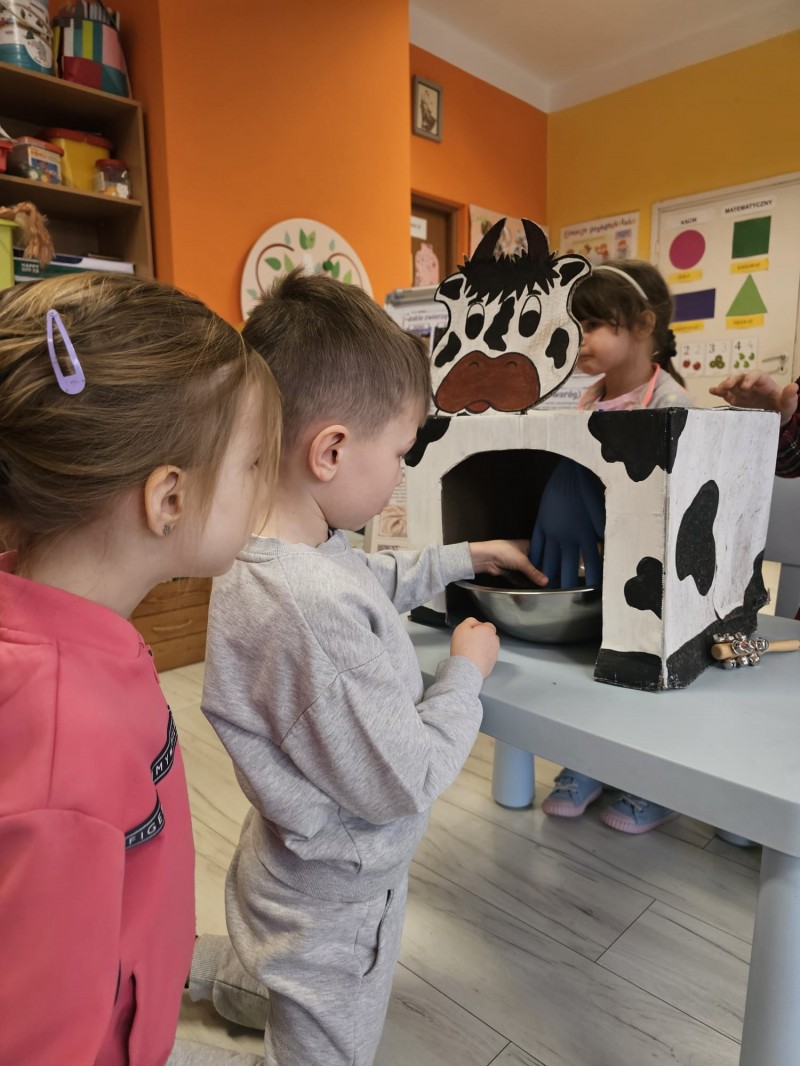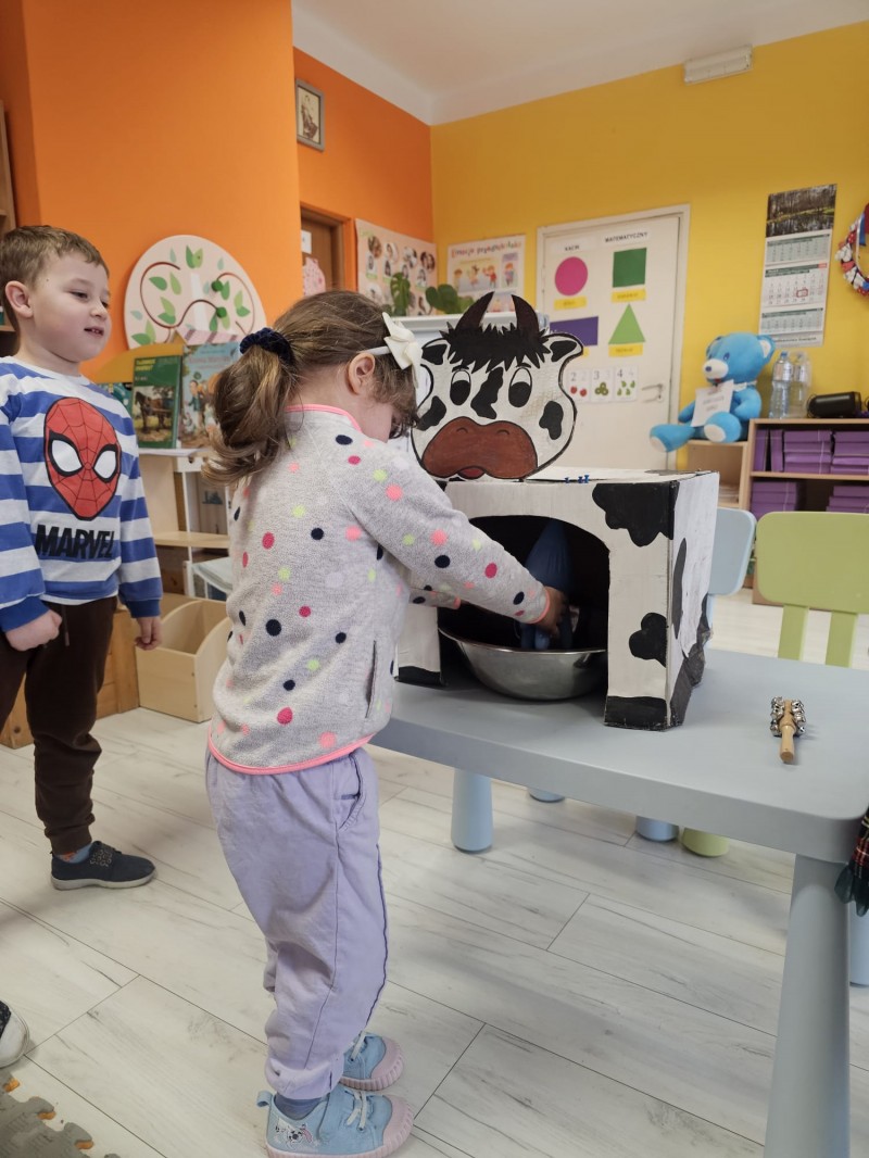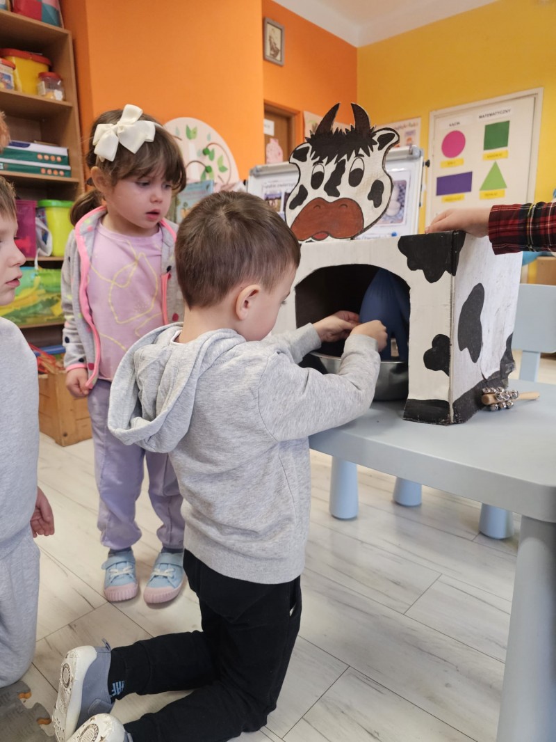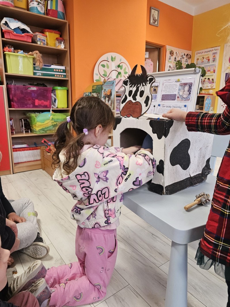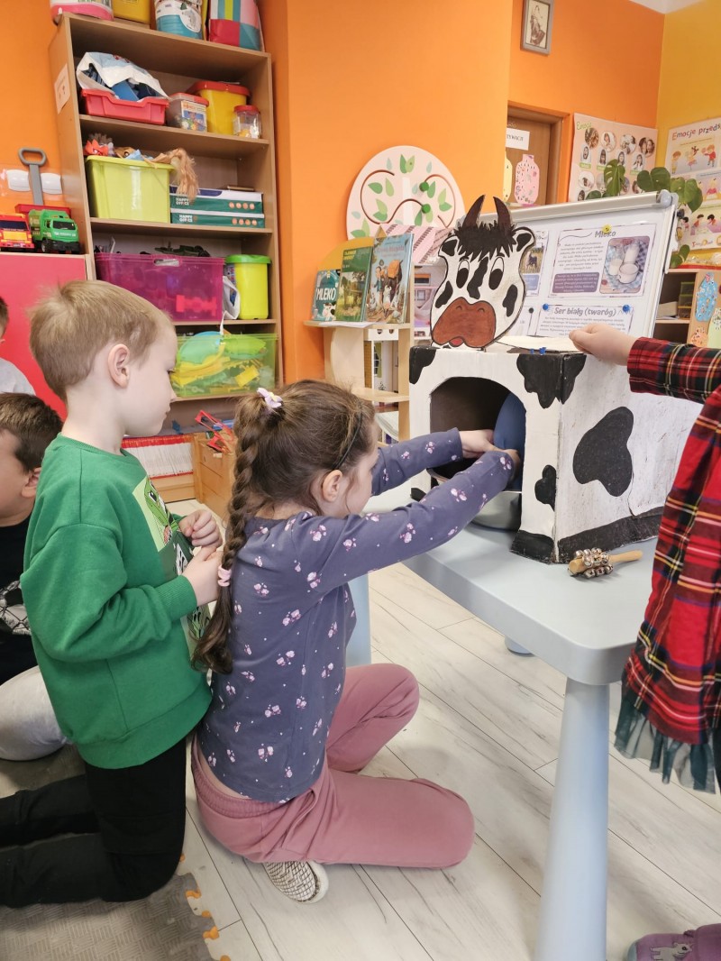Podczas spotkania zaprezentowała różne produkty powstające z mleka i opowiedziała, dlaczego warto je jeść na co dzień. Najwięcej radości wzbudziła jednak własnoręcznie wykonana przez Milenkę krowa z kartonu, którą dzieci mogły… wydoić!