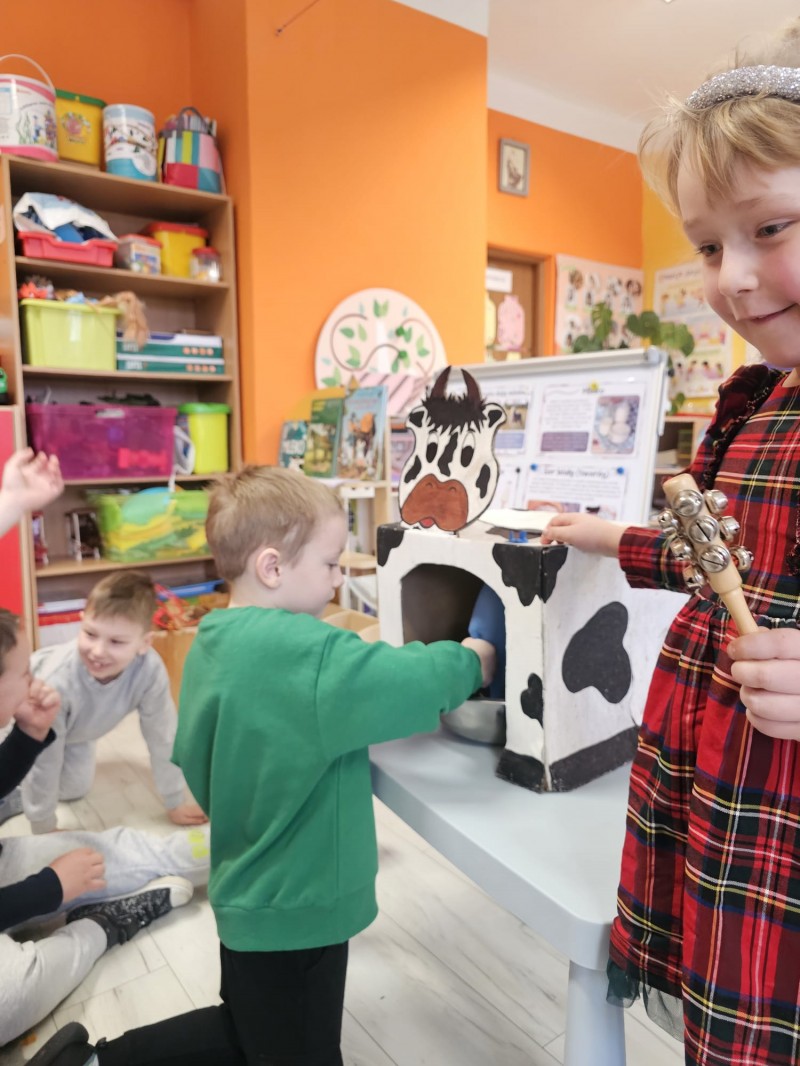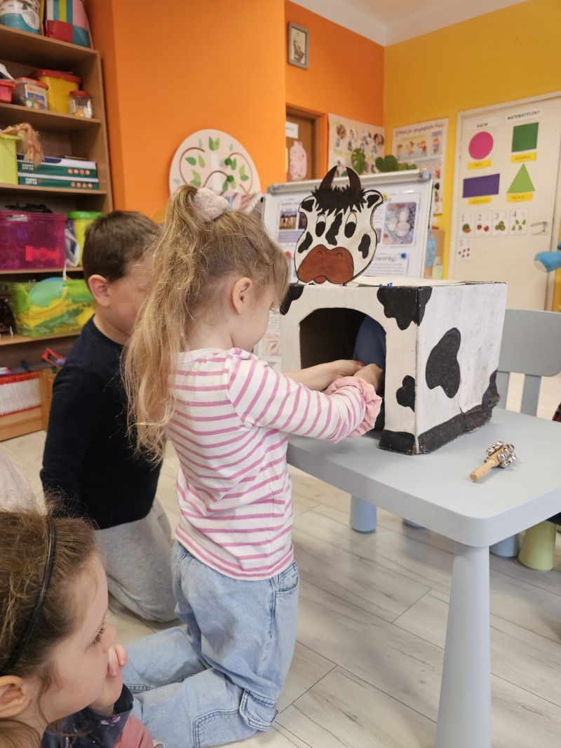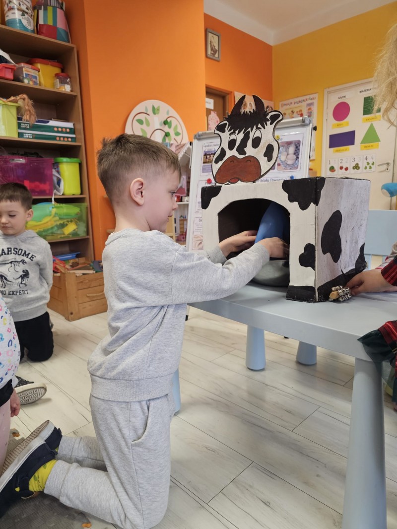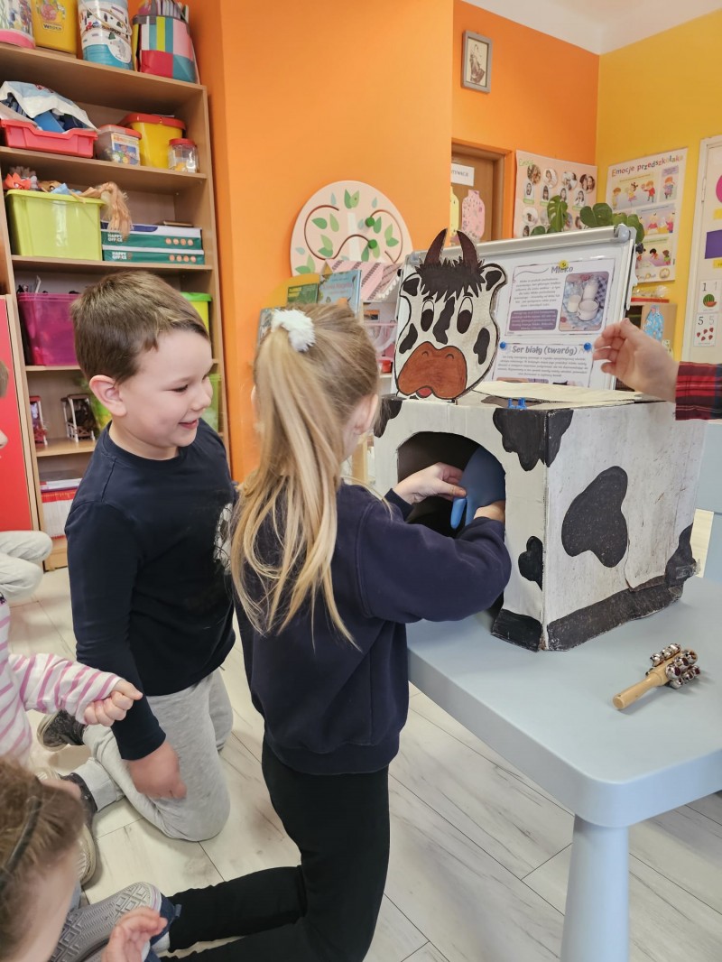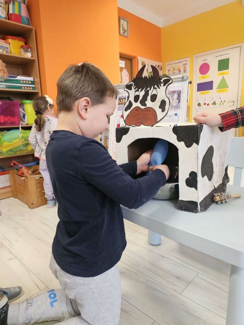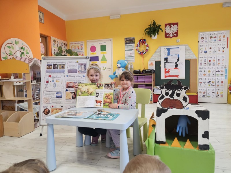 Podczas spotkania zaprezentowała różne produkty powstające z mleka i opowiedziała, dlaczego warto je jeść na co dzień. Najwięcej radości wzbudziła jednak własnoręcznie wykonana przez Milenkę krowa z kartonu, którą dzieci mogły… wydoić!