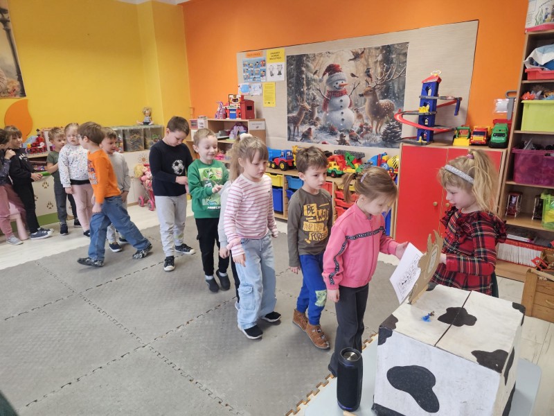 Zajęcia były pełne uśmiechu, ciekawości i dobrej zabawy, a Milenka świetnie poradziła sobie w roli prowadzącej. Brawo za kreatywność, odwagę i wspaniały pomysł na naukę przez zabawę! W zajęciu pomagała Jadzia, która pełniła rolę asystentki.
