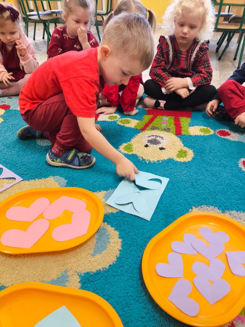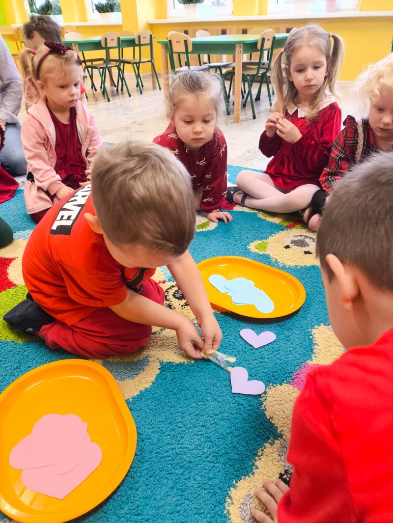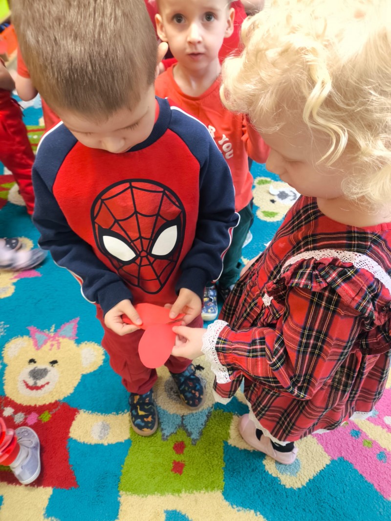 Maluszki świętowały 13.02. Walentynki. Każdy postarał się, aby założyć coś czerwonego. A podczas zajęć towarzyszyły nam serduszka i zabawy matematyczne oraz ruchowe. Na koniec każdy wykonał swoje serduszko i przyozdobił je kolorowym konfetti. Wszystkie aktywności sprawiły naszym najmłodszym przedszkolakom wiele radości.